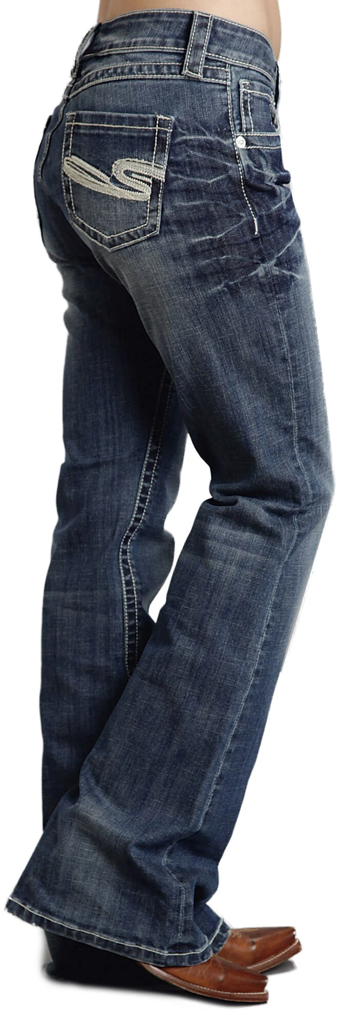 - Five-pocket styling with “S” stitched rear pockets
