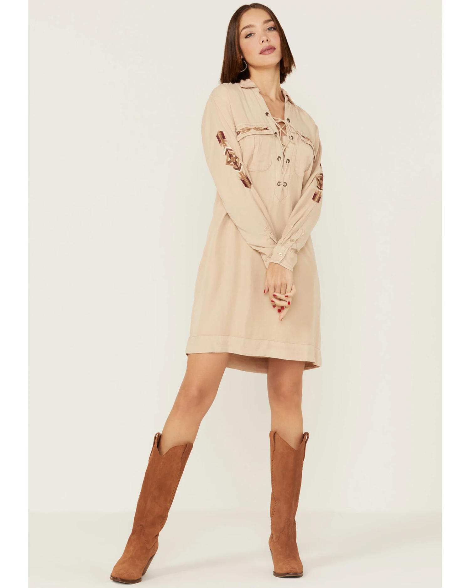 Stetson Women’s Safari Southwestern Embroidered Lace-Up Dress