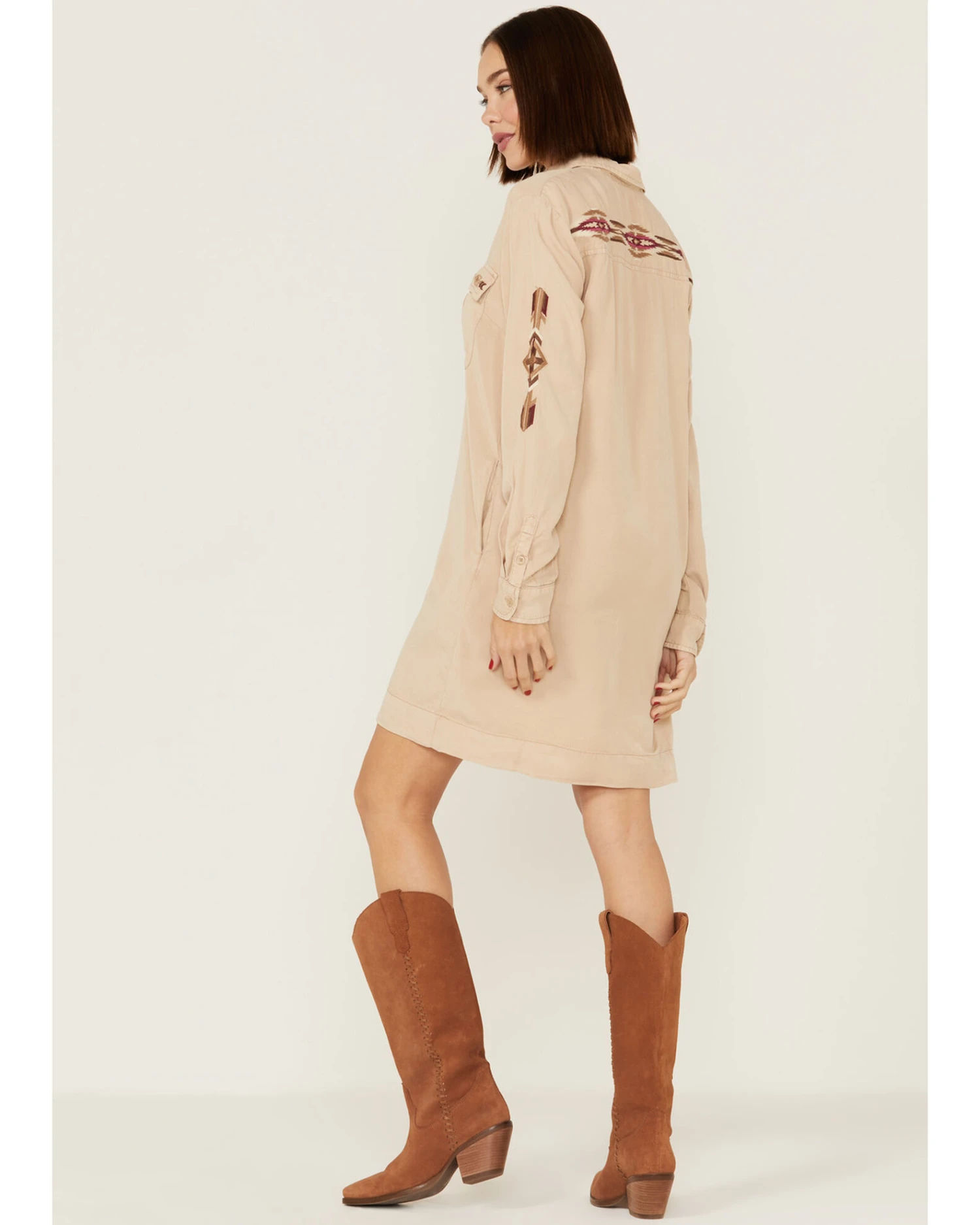- Embroidered Southwestern details on pockets, sleeves and back yoke